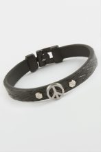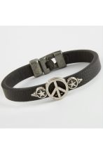 Barış İşareti Kaliteli Suni Deri Bileklik-Siyah