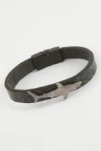 Ay Yıldız Suni Deri Bileklik-Siyah adet