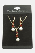 Çiçek İnci Zirkon Taşlı Set Kolye-Kırmızı adet