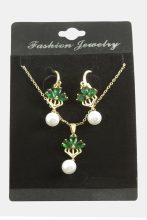 Çiçek İnci Zirkon Taşlı Set Kolye-Yeşil adet