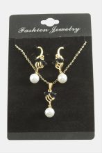 Çiçek İnci Zirkon Taşlı Set Kolye-Siyah adet