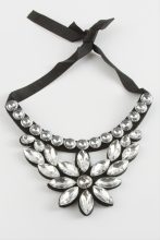 Çiçek Taşlı Yaka Kolye-Gümüş Rengi adet