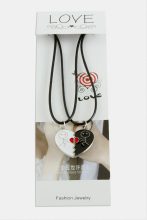 Kalp Uçlu Çift Kolye-Gümüş Rengi
