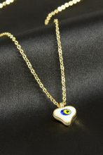 Kalp Nazar Kapaklı Zirkon Taşlı Çelik Kolye-Sarı