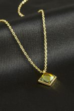 Kare Kristal Taşlı Çelik Kolye-Sarı adet