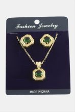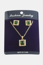Kare Zirkon Taşlı Set Kolye-Siyah adet