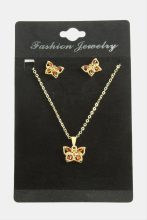 Kelebek Zirkon Taşlı Set Kolye-Siyah adet