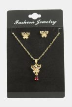 Kelebek Zirkon Taşlı Set Kolye-Kırmızı adet