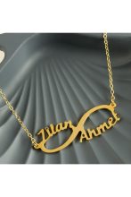 Kişiye Özel Sonsuzluk Çift İsim Yazılı Kolye-Sarı adet