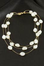 Oval İnci Üçlü Kolye-Sarı