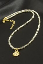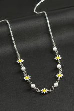 Papatya İnci Mineli Kolye-Gümüş Rengi adet