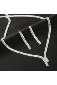 Tamtur Baget Taşlı Lüks Set Kolye 4 mm-Gümüş Rengi adet