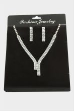 Tamtur Baget Taşlı Lüks Set Kolye 4 mm-Gümüş Rengi