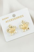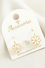 Çiçek Trend Mineli Metal Küpe-Beyaz