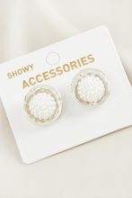 Çiçek Trend Mineli Metal Küpe-Beyaz adet