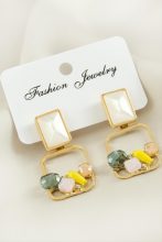 Dikdörtgen Sedef Taşlı Küpe-Sarı adet
