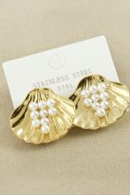 İstiridye İnci Lüks Çelik Küpe-Sarı