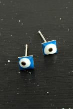Mavi Renkli Kare Nazar Mineli Minik Küpe 1 Çift-Mavi