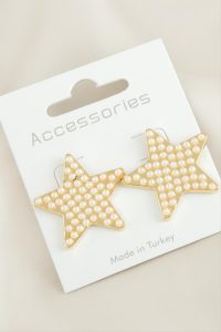 Yıldız Taşlı Yeni Sezon İnci Küpe-Sarı adet