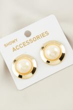 Yuvarlak İnci Taşlı Küpe-Sarı
