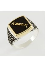 Mustafa Kemal Atatürk İmzalı Metal Erkek Yüzük-Gümüş Rengi adet