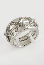 Çarpı Taşlı Metal Yüzük-Gümüş Rengi