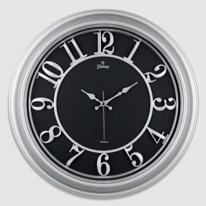 DUVAR SAATİ GÜMÜŞ GRİ İÇİ SİYAH 45CM KABARTMA RAKAM METAL AKREP YELKOVAN AKAR SANİYE adet