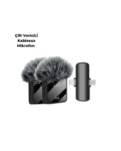 Canlı Yayın ve Video Çekimleri İçin Çiftli Kablosuz Yaka Mikrofon