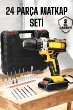 24 Parça Çift Bataryalı Şarjlı Matkap Seti 24W Motor ve Otomatik Mil Kilitli Tasarım adet