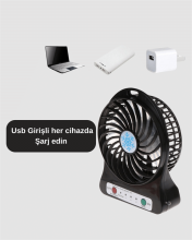 USB Girişli Taşınabilir Masaüstü Mini Fan – 3 Kademeli Hız, Şarjlı, Işıklı, Sessiz Çalışma adet