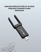 Yüksek Hızlı 1200 Mbps Çift Bant USB WiFi Adaptör – Güçlü Sinyal, Geniş Uyumluluk
