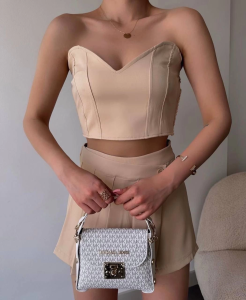 Arkadan Büzgülü Esnek Büstiyer Bej (Beden: M)