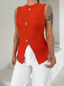 Kadın Turuncu Bisiklet Yaka Gold Düğmeli Ottoman Bluz S2310 (Beden: S) adet