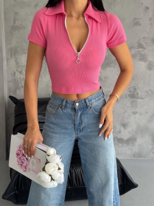 Kaşkorse Yaka Fermuarlı Bluz Fuşya (Beden: S) adet