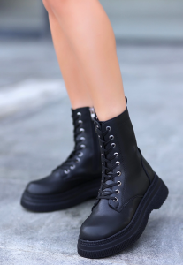 Roxan Siyah Cilt Bağcıklı Bot (Numara: 39)