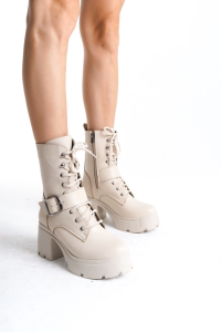Linma Bej Cilt Bağcıklı Topuklu Bot (Numara: 39) adet