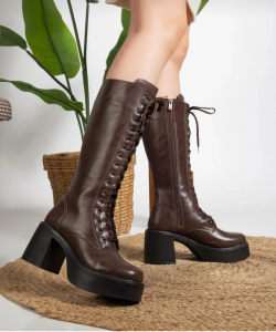 Guay Kahverengi Cilt Bağcıklı Topuklu Çizme (Numara: 36) adet