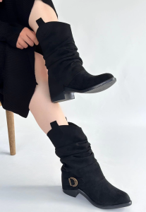 Canty Siyah Süet Körüklü Topuklu Çizme (Numara: 39) adet