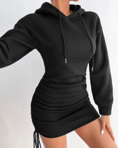 3 İplik Şardonlu Kapşonlu Elbise Siyah (Beden: L)