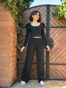Fitilli Prenses Kol Alt Üst Takım Siyah (Beden: S)