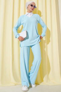 Gömlek Yaka Fitilli Salaş İkili Takım Buz Mavisi T4300 (Beden: Xl)