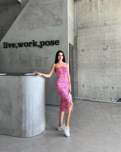 Kaşkorse Desenli Askılı Elbise Pembe (Beden: M) adet