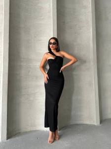 Krinkıl Tek Omuz Uzun Elbise Siyah S25455 (Beden: M) adet
