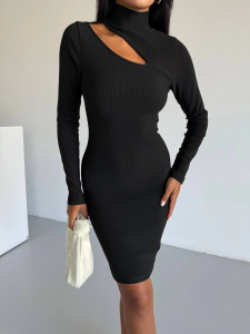 Boğazlı Gögüs Dekolteli Elbise Siyah F2333 (Beden: L) adet