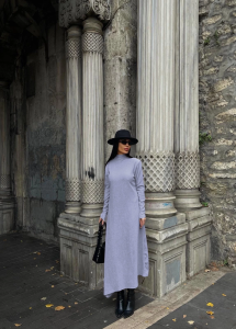 Boğazlı Kalın Bürümcük Uzun Elbise Gri (Beden: S) adet