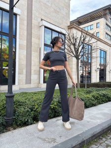 Bol Paça Pantolonlu Alt Üst Takım Antrasit (Beden: L)