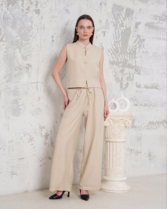 Broşlu Yelek Pantolon Takım Bej S255821 (Beden: S)
