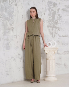 Broşlu Yelek Pantolon Takım Haki S255821 (Beden: S)