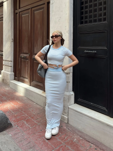 Çizgili Etekli Takım Mavi S3609 (Beden: M)