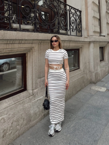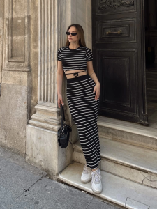 Çizgili Etek Crop Takım Siyah (Beden: S) adet